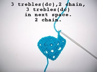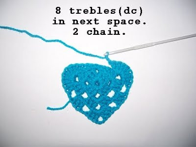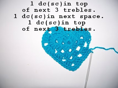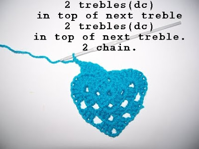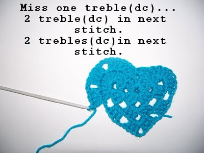 Don't forget to miss this 2 chain space as it gives the heart some shape...