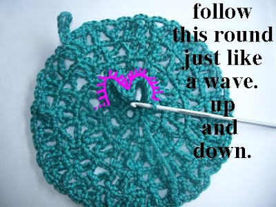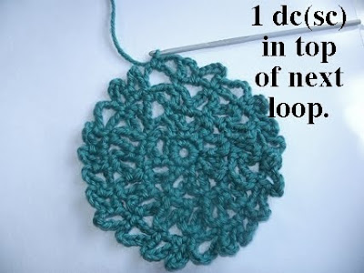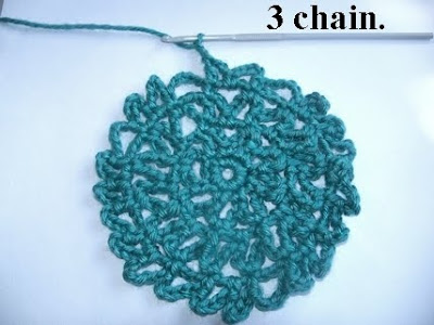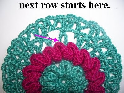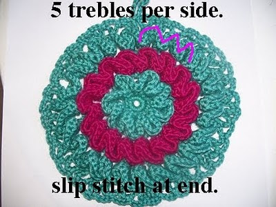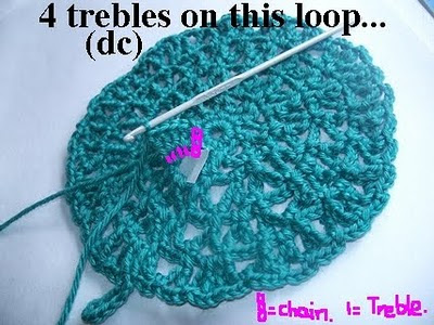 1 ch,3 treble in next space...join BLUE in next 1 ch...