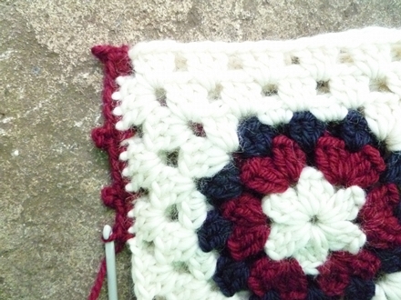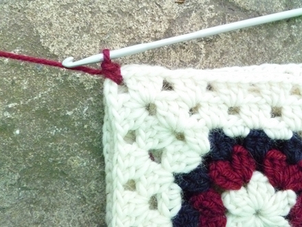 add 1 dc(sc) extra in this corner and in the very last corner at end...